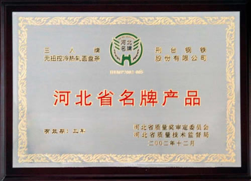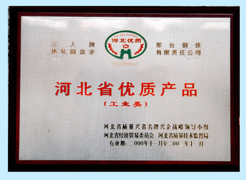 The Three Person brand hot rolled wire was awarded the Quality Products of Hebei.