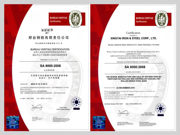 Xingtai Steel was awarded AAA credit rating enterprise of China.