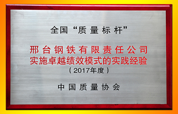 2017年9月,從國家工信部、中國質量協(xié)會傳來喜訊,邢鋼申報的“實施卓越績效模式的實踐經驗”被評為2017年度“質量標桿”,并作為典型經驗予以推廣。