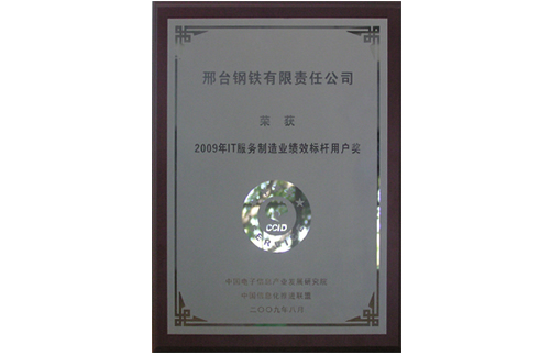2009年8月,邢鋼榮獲2009年IT服務(wù)制造業(yè)績效標桿用戶獎。