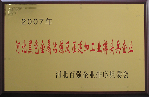 2007年12月,邢鋼獲“河北百?gòu)?qiáng)企業(yè)”榮譽(yù)稱(chēng)號(hào)。