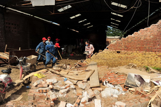 邢鋼志愿者奮戰(zhàn)在救災清淤第一線