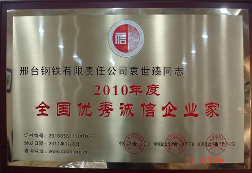 - 邢鋼榮獲“中國質(zhì)量誠信企業(yè)”獎(jiǎng)牌