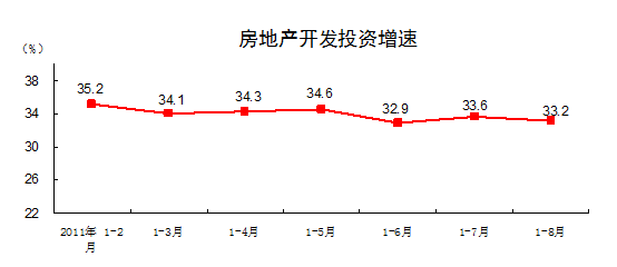 2011年1-8月份,固定資產投資(不含農戶)180608億元,同比增長25%,比1-7月份回落0.4個百分點。其中,國有及國有控股投資62422億元,增長12.1%。從環(huán)比看,8月份固定資產投資(不含農戶)增長1.16%。
