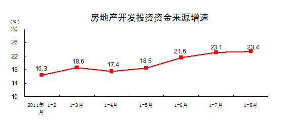 從到位資金情況看,1-8月份,到位資金212194億元,同比增長23.3%。其中,國家預算內資金增長13.1%,國內貸款增長9%,自籌資金增長29.4%,利用外資增長14.1%,其他資金增長17.3%。