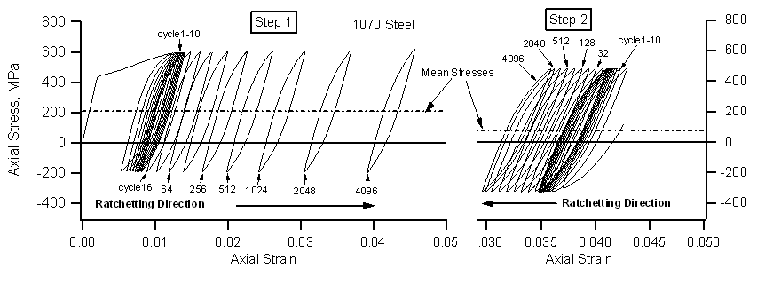 材料受到拉伸或壓縮時(shí),如果力大于材料的屈服強(qiáng)度,那么材料就會發(fā)生塑性變形。外力卸載并反向加載,材料先是沿彈性線恢復(fù)繼而發(fā)生反向變形,如果反向加載的載荷小于初始加載的載荷,那么材料反向變形大小就會小于初始變形,進(jìn)而產(chǎn)生了殘余應(yīng)變。如此反復(fù),這就是材料中的棘輪效應(yīng)。簡單點(diǎn)說,就是材料在非對稱應(yīng)力循環(huán)載荷下將會產(chǎn)生塑性變形循環(huán)累積現(xiàn)象,稱之為棘輪效應(yīng)。