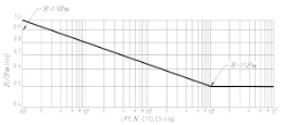 對很多金屬已經(jīng)進(jìn)行了大量的疲勞試驗(yàn)。從這些試驗(yàn)中,已經(jīng)開發(fā)出拉伸強(qiáng)度和循環(huán)次數(shù)的曲線圖。鍛鋼的一個例子如圖1所示。 在這個對數(shù)記錄圖上的垂直坐標(biāo)標(biāo)示出了施加的應(yīng)力與鋼的極限拉應(yīng)力“SU”的比例,而橫坐標(biāo)是應(yīng)力循環(huán)至失效的次數(shù)。SN曲線的左側(cè)表明,在高循環(huán)載荷下的鋼件產(chǎn)生的應(yīng)力占了拉伸強(qiáng)度的較大比例,在一定數(shù)量的循環(huán)之后就會失效。SN曲線的右側(cè)表明,如果循環(huán)應(yīng)力保持在可定義的極限以下,則部件將具有無限的壽命。曲線還告訴我們,如果一個鋼件只有一個加載周期,其應(yīng)力大于其拉伸強(qiáng)度,則該鋼件將失效(如當(dāng)一個小螺栓如果擰緊時斷開)。如果施加的應(yīng)力是拉伸強(qiáng)度的90%或更多,它也會在小于一千個周期內(nèi)失效。但如果應(yīng)力保持在抗拉強(qiáng)度的一半以下,它就不會疲勞。