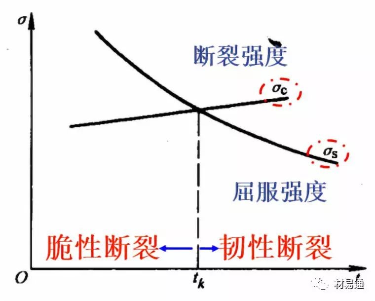 低溫脆性是材料屈服強度隨著溫度的降低急劇增加的結(jié)果;見右圖,屈服點隨著溫度的下降而升高,但材料的斷裂強度隨著溫度的變化很?。粌删€交點對應(yīng)的溫度就是tk。