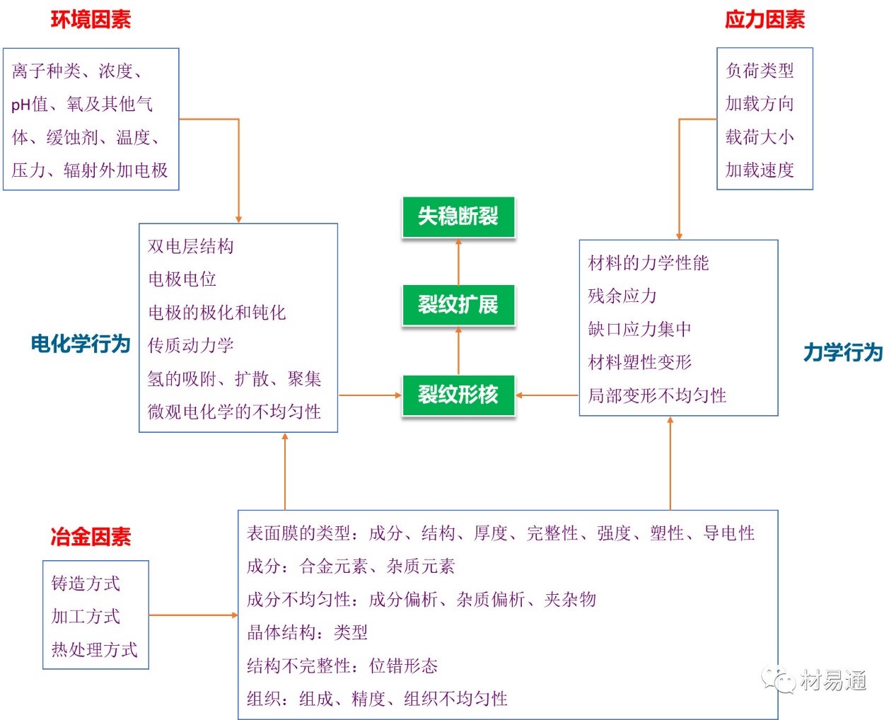 應(yīng)力腐蝕影響因素——環(huán)境、電化學(xué)、力學(xué)、冶金。