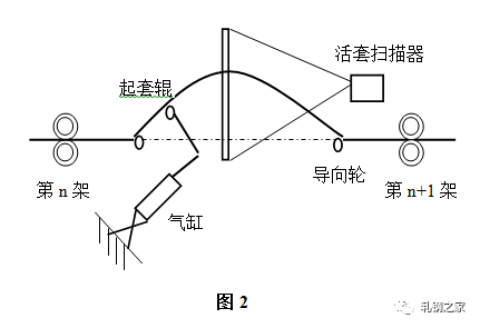 活套是用來檢測和調(diào)節(jié)相鄰機(jī)架間速度關(guān)系從而實現(xiàn)無張力軋制的設(shè)備。活套主要由活套掃描器、起套輥及其調(diào)節(jié)器等組成,結(jié)構(gòu)如(圖2)所示。主要作用是根據(jù)檢測的套位信號來控制上游軋機(jī)的速度,實現(xiàn)自動控制系統(tǒng)。