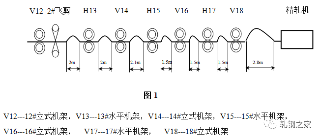 為了保證高速、穩(wěn)定地生產(chǎn),設(shè)計者在軋線共設(shè)置了七個活套裝置:兩個水平活套(在14#--15#機(jī)架間,18#--19#機(jī)架間)和五個立活套。布置情況及活套跨距如(圖1)所示。至于活套掃描器與活套臺的距離A,要根據(jù)活套的套量偏差H以及活套檢測角度α進(jìn)行初始調(diào)整及校準(zhǔn)。注意活套掃描器安裝位置不同,會影響到測得的實際值。其一般計算公式為A=H/(2×tgα/2)。在軋制某些規(guī)格時,有些活套可以不選用,那么此活套的控制不起作用,即起套輥不動作。