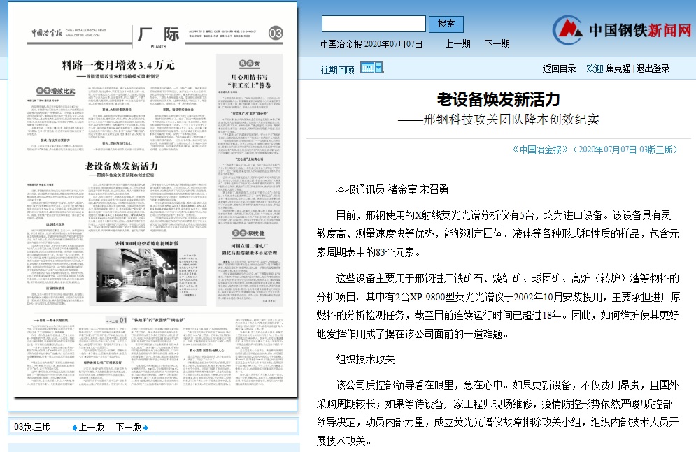 目前,邢鋼使用的X射線熒光光譜分析儀有5臺,均為進(jìn)口設(shè)備。該設(shè)備具有靈敏度高、測量速度快等優(yōu)勢,能夠測定固體、液體等各種形式和性質(zhì)的樣品,包含元素周期表中的83個(gè)元素。