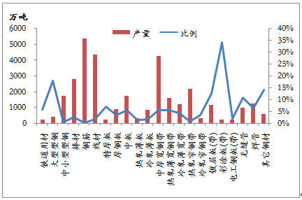 1-5月份,我國(guó)共出口鋼材1791.7萬噸,棒線材、角型材、板材、鋼管、鐵道用材和其它用材分別占11.4%、5.9%、60.1%、15.4%、1.0%和6.2%,板材所占份額最大,棒線材和鋼管次之。就前5個(gè)月出口量而言,退稅取消的鋼材品種出口數(shù)量為703.3萬噸,占1-5月份鋼材出口總量的39.3%。雖然鋼材總出口量只占到國(guó)內(nèi)產(chǎn)量的5.1%,但仍有部分品種出口占產(chǎn)量的比例較大,對(duì)出口具有一定依賴性。鍍鋅板、熱軋板卷、中厚板和大型型鋼的出口數(shù)量占產(chǎn)量的比例較大,在出口稅率下調(diào)的情況下,國(guó)內(nèi)資源供應(yīng)的壓力將會(huì)明顯增大,從而影響到國(guó)內(nèi)價(jià)格的運(yùn)行。不過,在政策執(zhí)行日期之前,出口企業(yè)必定要加緊落實(shí)前期簽訂的合同,熱軋卷等品種的出口可能會(huì)加大,對(duì)國(guó)內(nèi)鋼材市場(chǎng)將是利好。