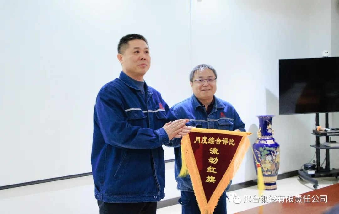 12月10日,在邢鋼207會(huì)議室,公司董事長(zhǎng)張育明將11月份月度綜合評(píng)比“流動(dòng)紅旗”再次頒發(fā)到煉鋼廠廠長(zhǎng)和紅杰手中。