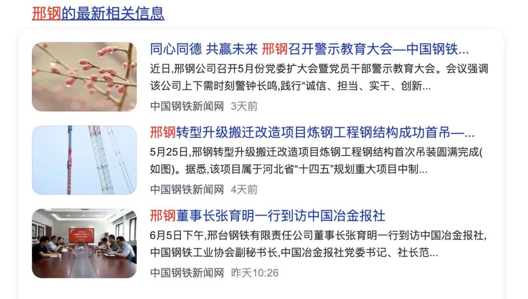 6月5日下午,邢臺鋼鐵有限責(zé)任公司董事長張育明一行到訪中國冶金報社,中國鋼鐵工業(yè)協(xié)會副秘書長,中國冶金報社黨委書記、社長范鐵軍熱情歡迎張育明一行的到來,雙方進行了座談交流。