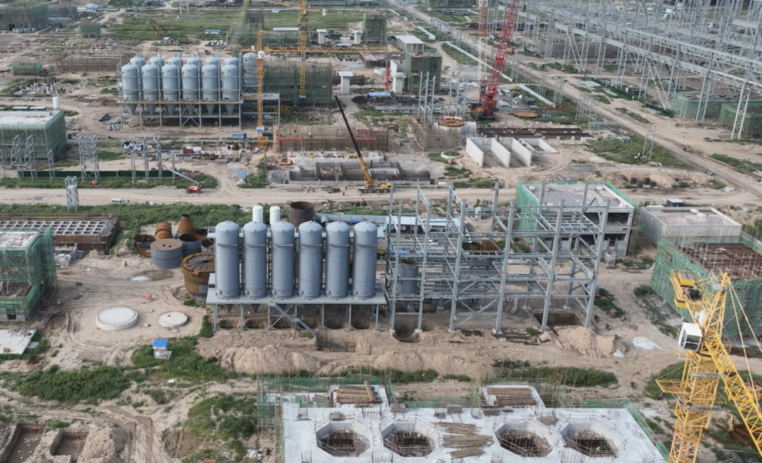 在大盤卷車間西側(cè)的不遠(yuǎn)處,就是新邢鋼的心臟地帶——熔融還原爐!它可是新邢鋼的超級大明星,一路上我倆嘰嘰喳喳地探討過好多問題,全部都是關(guān)于它的建設(shè)情況。目前它還沒有落好,但我們有這樣的耐心,好事兒多磨嘛!看還原爐旁邊那些架起的鋼結(jié)構(gòu),也如同衛(wèi)士一般站在那里,我相信它們也和你一樣,熱切期待還原爐像啟明星一樣冉冉升起,照亮整個新邢鋼,引領(lǐng)行業(yè)未來!