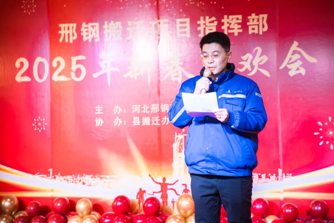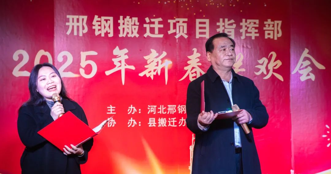 2025年1月18日下午4時,邢鋼搬遷項目指揮部食堂區(qū)域張燈結(jié)彩,氣氛熱烈。邢鋼公司、縣委縣政府及政府部門、縣搬辦及五冶等施工單位、邢鋼參建職工代表、邢鋼公司先進項目部及先進個人等歡聚一堂,齊心聚力再加油,迎接新的機遇與挑戰(zhàn),將在公司高質(zhì)量發(fā)展新征程上再譜新篇。