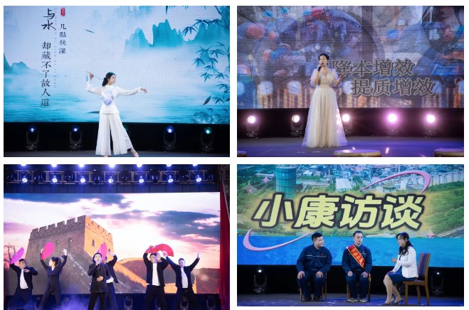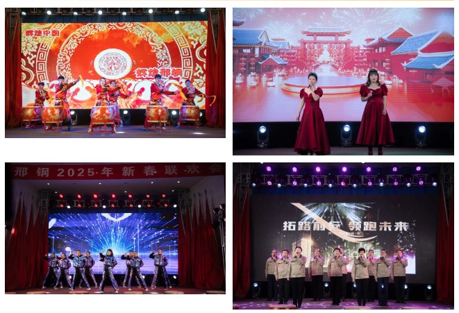 聯(lián)歡會在煉鐵廠震撼人心的《旗鼓飛揚(yáng)》的鼓聲中拉開帷幕,煉鋼廠、線材廠、新翔公司等二級單位、子公司錄制的《邢鋼一線員工賀新春》視頻為聯(lián)歡會烘托出濃厚的節(jié)日氣氛。碳資產(chǎn)管理部蘆麗華、線材廠張嬌的一首《紅彤彤的春天》讓觀眾如沐春風(fēng),銷售公司田芳、張可等的動感現(xiàn)代舞《奔跑吧,兄弟!》又讓觀眾切身感受到市場營銷人員的拼搏、奉獻(xiàn)。焦化廠申學(xué)軍、閆俊萍等的《難忘的焦?fàn)t情懷》,以情境小品的形式,再現(xiàn)2#焦?fàn)t安全停爐的場景,重溫焦化人站好最后一班崗的敬業(yè)情懷;線材廠魏東的《步步高》,唱出了邢鋼人的激情與豪情。技術(shù)中心蔡永賓等的詩朗誦《攜手邢鋼,追夢邢鋼》,以新一代邢鋼人的視角,張揚(yáng)青春,澎湃激情;煉鋼廠張康健、甄建軍的《想把我唱給你聽》、資金部趙嘉薏的舞蹈《青花瓷》、能源動力部董巖的《匆匆歲月細(xì)細(xì)地過》、新翔公司郭文杰、景雙輝等的歌伴舞《雪龍吟》展現(xiàn)了鋼鐵人的別樣情懷。晚會中的兩個小品——煉鐵廠的《考察》、煉鋼廠的《小康訪談》,在輕松詼諧的氣氛中,展示了廣大員工對新邢鋼美好未來的信心。邢鋼搬遷項目指揮部與綜合辦公室、線材廠帶來的詩朗誦《希冀,奮進(jìn),筑夢新邢鋼》,回顧了邢鋼搬遷項目的建設(shè)歷程,激勵全體員工以更加昂揚(yáng)的斗志、更加飽滿的激情,投身到各自的崗位上,讓新邢鋼的旗幟,永遠(yuǎn)在鋼鐵行業(yè)的巔峰飄揚(yáng)!