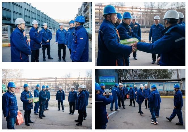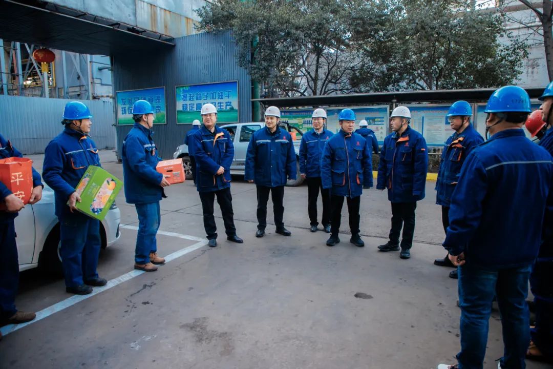 日月開(kāi)新元,天地又一春。1月29日,農(nóng)歷大年初一。受公司黨委書(shū)記、董事長(zhǎng)張育明委托,公司領(lǐng)導(dǎo)田新中、魏鎖安、魏利剛、侯浩然到焦化廠、儲(chǔ)運(yùn)中心、煉鐵廠、質(zhì)控部、煉鋼廠、線材廠、能源動(dòng)力部、職工食堂及新翔公司,向春節(jié)期間堅(jiān)守崗位的一線員工親切慰問(wèn),送去蘋(píng)果、橘子、瓜子、糖等物品,并向大家致以新春祝福和節(jié)日問(wèn)候。