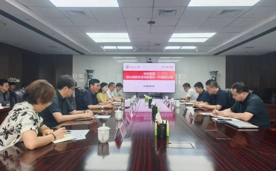 董事長張育明向校方簡要介紹了邢鋼的發(fā)展歷程及轉(zhuǎn)型升級搬遷改造項目,邢鋼作為深耕特鋼線材和深加工領域的高新技術企業(yè),始終致力于產(chǎn)品創(chuàng)新與技術升級。當前,邢鋼正全力推進轉(zhuǎn)型升級搬遷項目,對前沿技術成果轉(zhuǎn)化和高水平人才需求十分迫切,希望深化雙方合作,共同搭建產(chǎn)學研協(xié)同創(chuàng)新平臺,為邢鋼轉(zhuǎn)型升級與高質(zhì)量發(fā)展提供強有力的技術支撐。