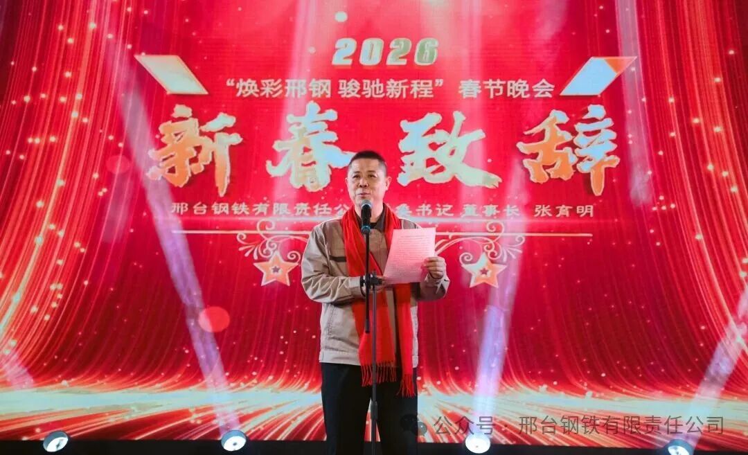 新征程,新目標(biāo),新跨越。2月6日,公司在會議中心舉辦“煥彩邢鋼,駿馳新程”2026年新春聯(lián)歡會。公司黨委書記、董事長張育明攜公司全體中高層領(lǐng)導(dǎo)與2025年受表彰的先進(jìn)個人、員工代表歡聚一堂,共話邢鋼大業(yè),喜迎丙午年新春。